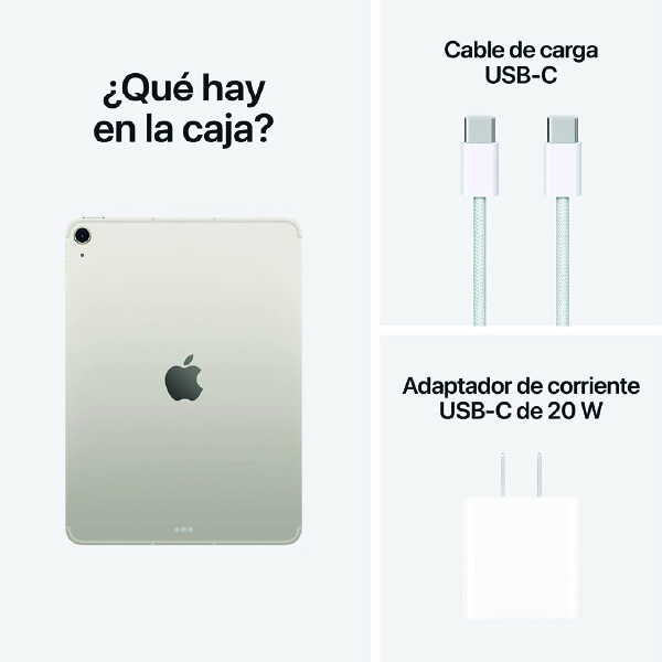 iPad Air, cable de carga USB-C (1 m), adaptador de corriente USB‑C de 20 W |