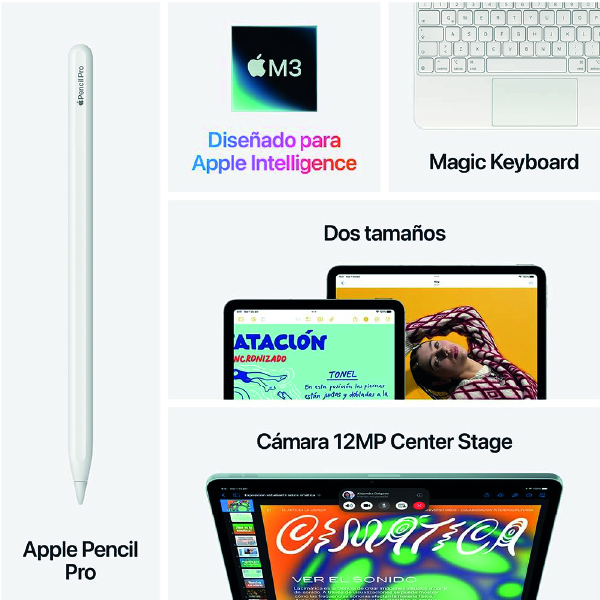 Compatible con el Apple Pencil Pro. Compatible con el Apple Pencil (USB‑C). Puntero flotante para el Apple Pencil |