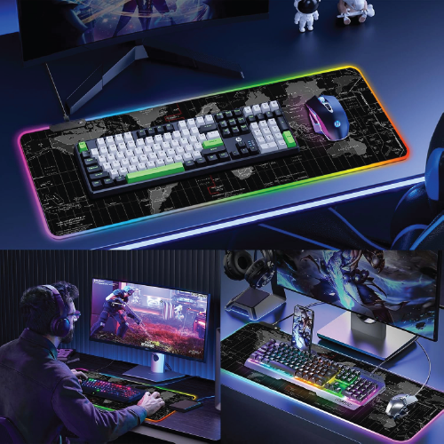 Nuestra mouse pad gaming está diseñada en un tamaño de 800 x 300 x 3 mm y puede cubrir perfectamente el escritorio y mantener tu portátil y el teclado. También puede proporcionar suficiente espacio para el ratón para garantizar tu mejor experiencia de juego mouse pad.