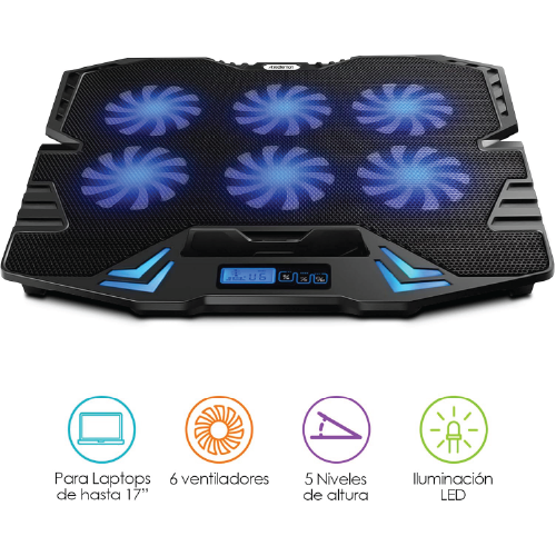 Posee 6 ventiladores silenciosos que reducen de forma eficaz la temperatura de tu computadora portátil. Selecciona una de las 6 velocidades y regula el enfriamiento.